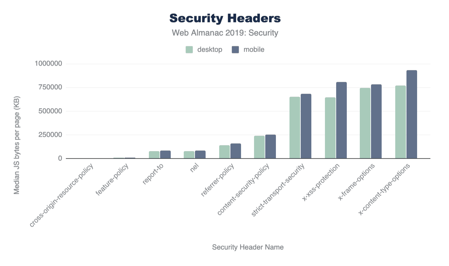 デスクトップページのわずか5.51%にCSPが含まれ、モバイルページのわずか4.73%にCSPが含まれていることがわかりましたが、これは展開の複雑さが原因と思われます。