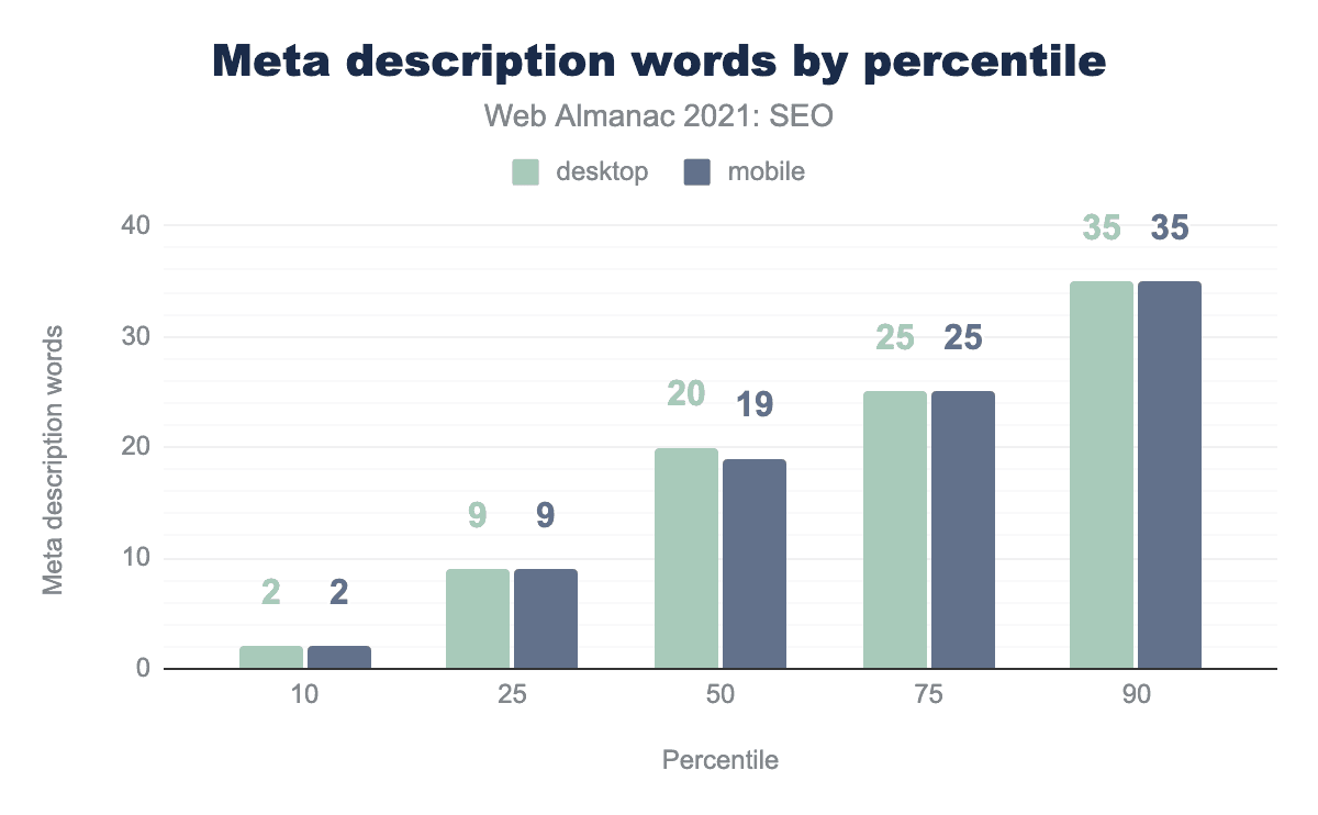 <meta name="description>タグには、それぞれ20語と19語が含まれています(中央値)。 - デスクトップとモバイルページの