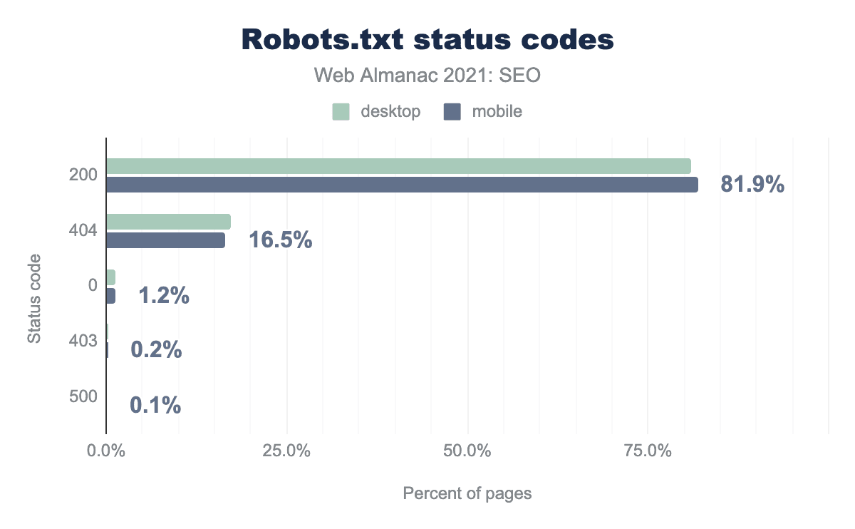 81.9%のWebサイトがrobots.txtファイル(モバイル)を活用している。前回(2019年72.2%、2020年80.5%)と比較すると、やや改善されたことになります。