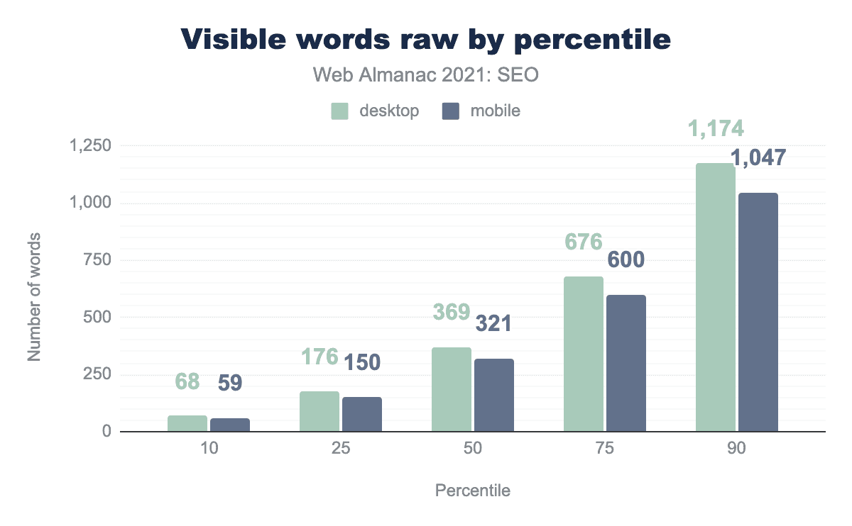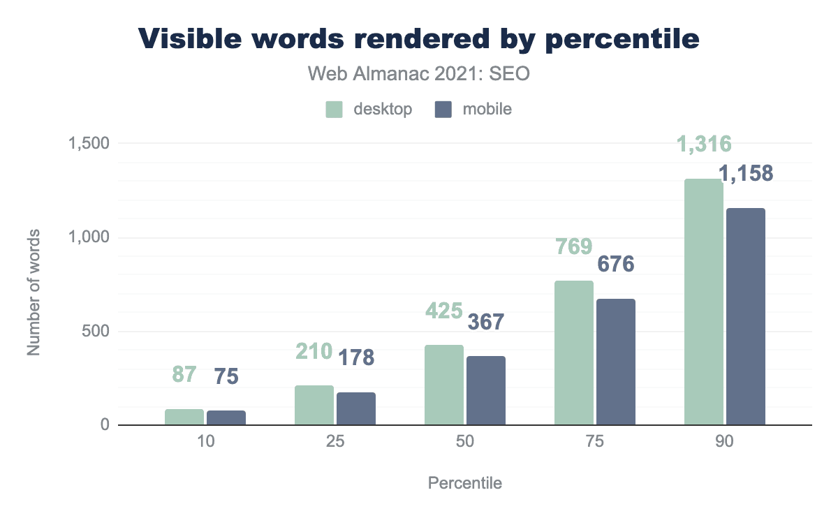 - モバイルページのレンダリングの中央値は367語であるのに対し、2020年には348語となっています。