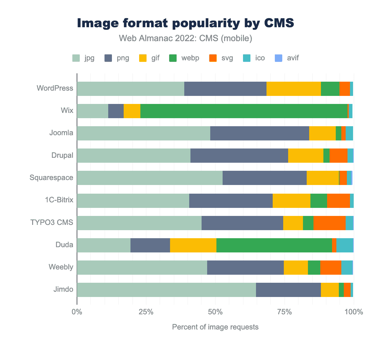 トップCMSでの異なる画像フォーマットの使用状況を調査できます: